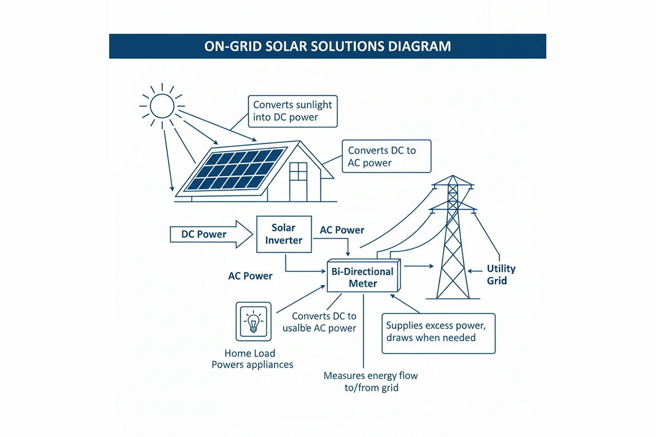 Cost-effective on-grid solar systems designed to reduce electricity bills and maximize returns through seamless grid integration.